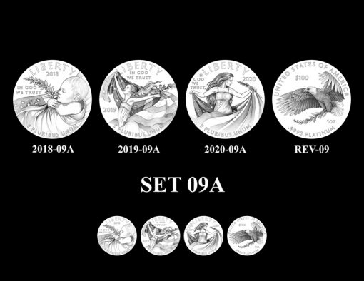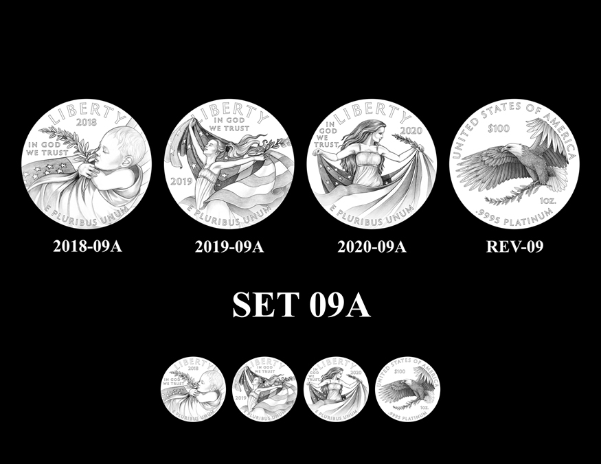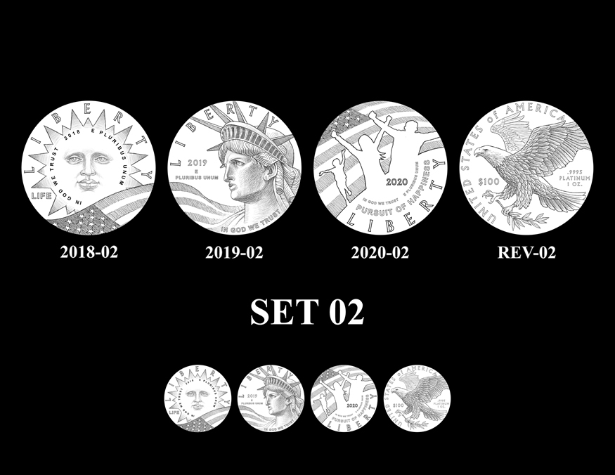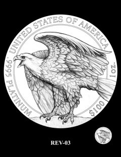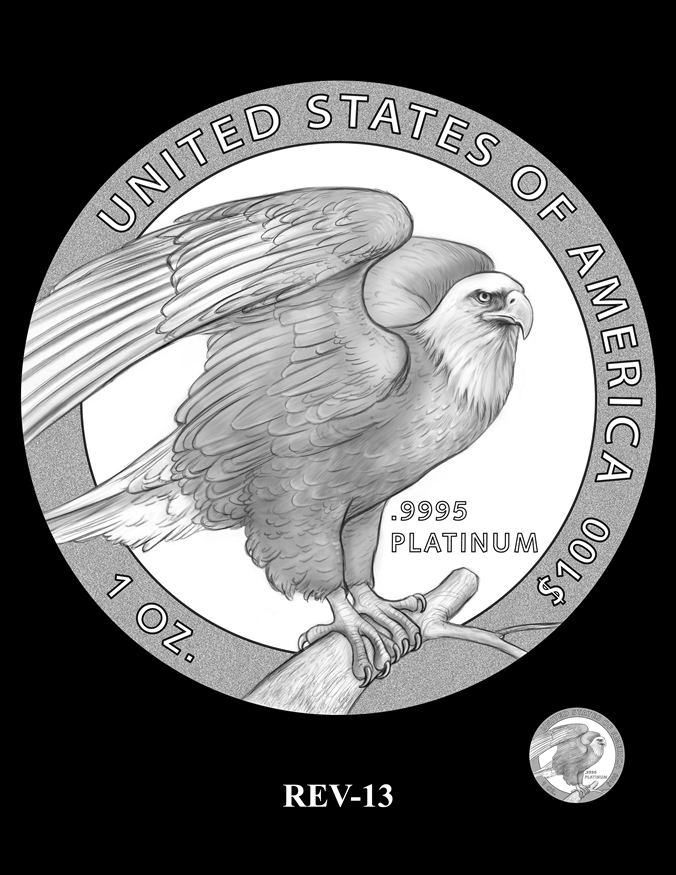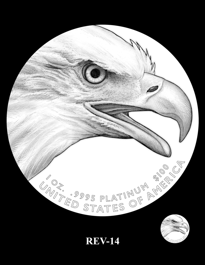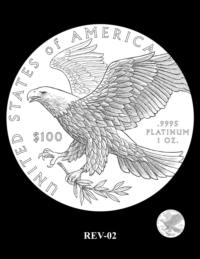 Their reverses will have a common design depicting an American eagle with surrounding inscriptions of "United States of America," "1 oz.," ".9995 Platinum," and the denomination, "$100."