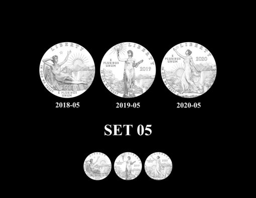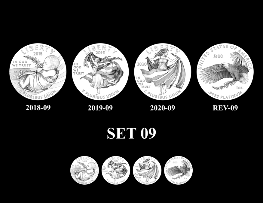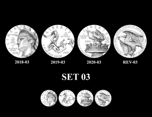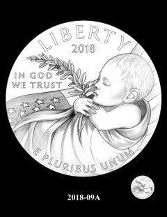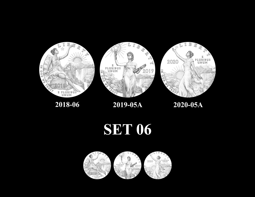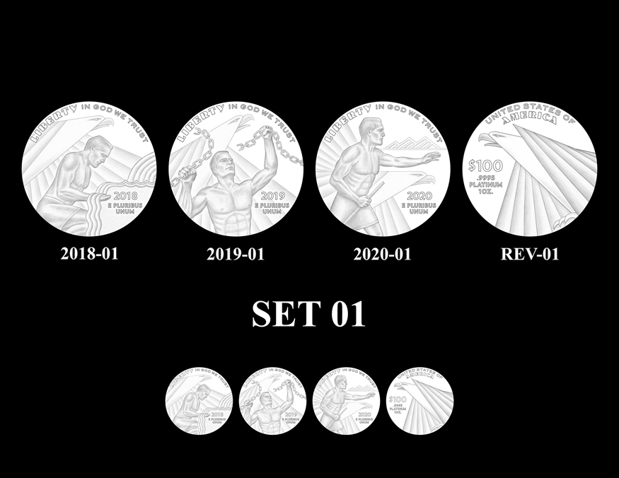 U.S. Mint images and descriptions of the proposed 2018, 2019, and 2020 designs are below. They are presented in groupings of 10 sets, with each set having a design for each of the three years. The Commission of Fine Arts (CFA) is reviewing the designs today, Sept. 15, and Citizens Coinage Advisory Committee (CCAC) will review them tomorrow, Sept. 16.