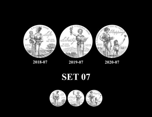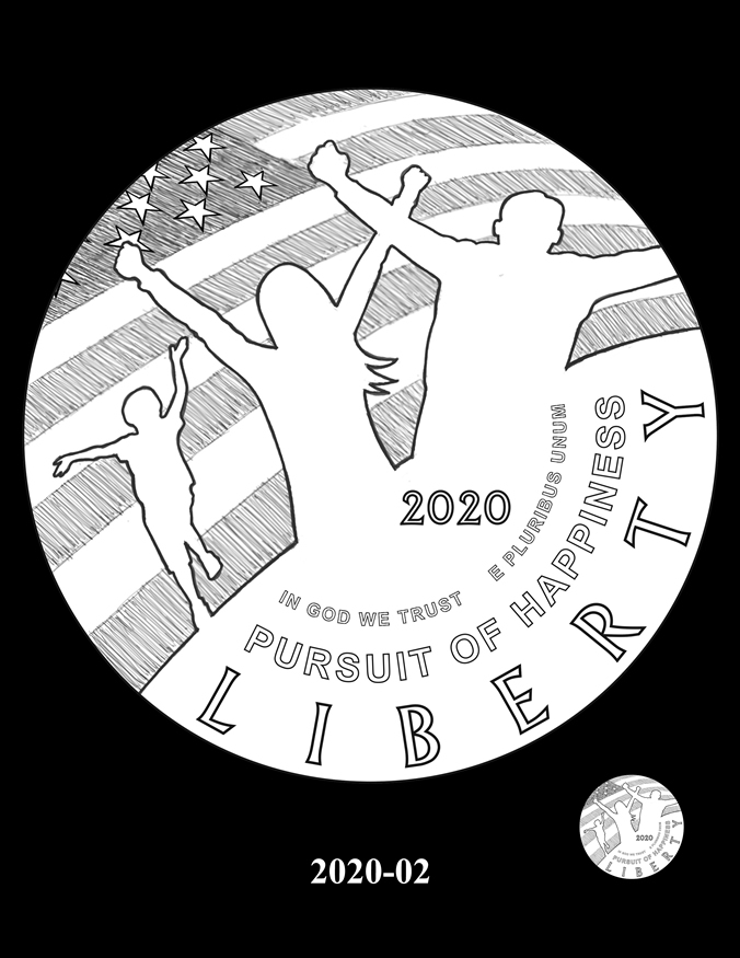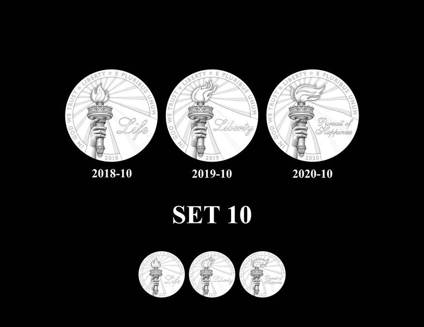 "We asked artists to develop submissions for all three years, creating designs that not only well represent each individual theme, but that also work together harmoniously to give expression to the core American principles of ‘Life, Liberty and the pursuit of Happiness’," the U.S. Mint said.