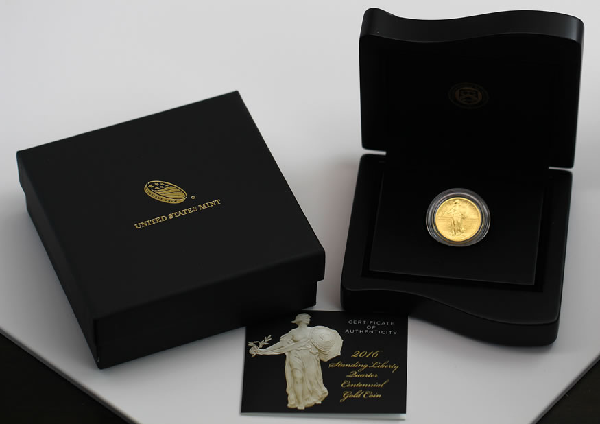 The U.S. Mint introduced its centennial Standing Liberty gold quarter on Sept. 8, 2016. This short article presents high-resolution photos and a video of the one-quarter ounce, .9999 fine 24-karat gold coin.