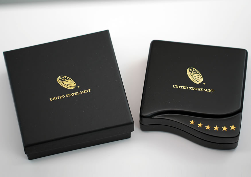 These photos show the coin’s packaging box, custom display case, certificate of authenticity and specifications: