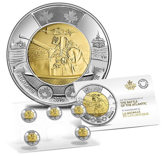 Buy packs of 75th Anniversary 2016 $2 Battle of the Atlantic Coins from the Royal Canadian Mint at www.mint.ca/battleatlantic.