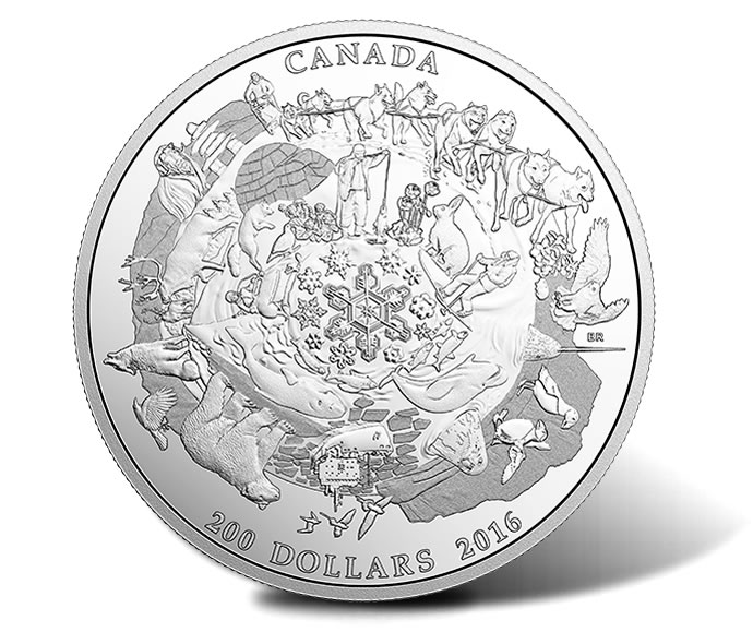 The splendor and diversity of the Arctic are portrayed on the Royal Canadian Mint’s new 2016 $200 Canada’s Icy Arctic 2 oz. Silver Coin, the second and last release this year and the fifth overall from the Landscapes of the North series of coins that sell at their legal tender face values.
