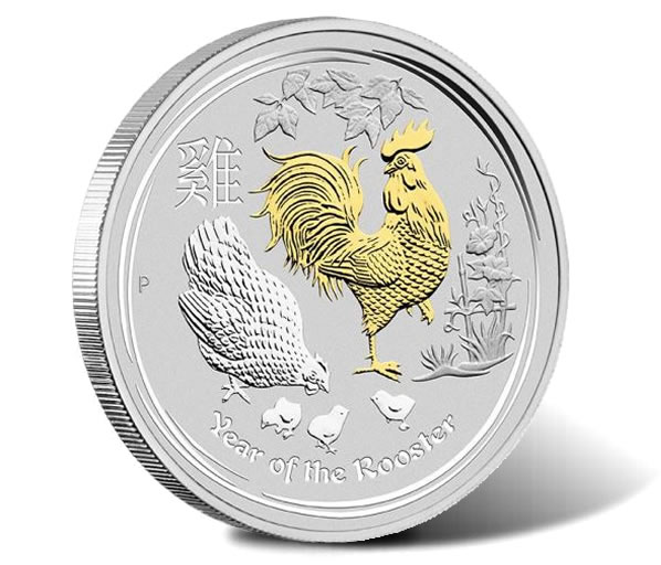 2017 Year of the Rooster Gilded Silver Coin
