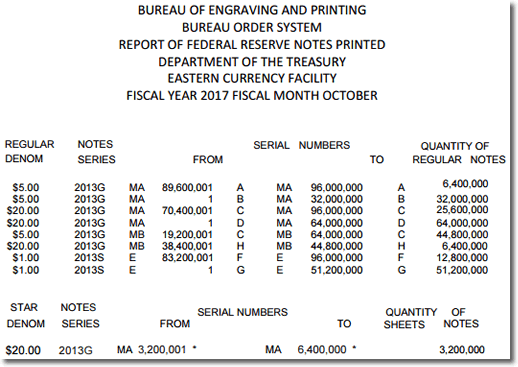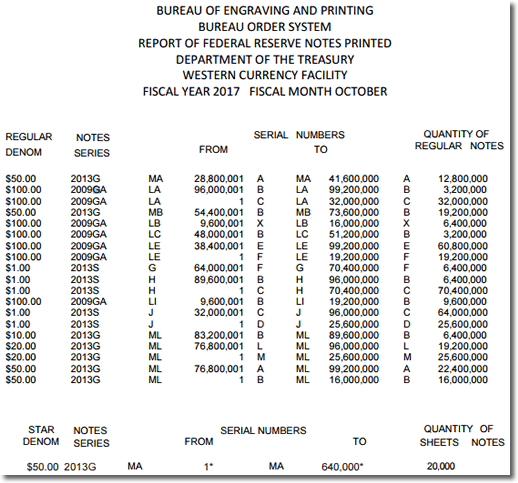 Below are images of the BEP’s latest monthly production report. They show the type of banknotes manufactured at the agency’s two printing facilities.