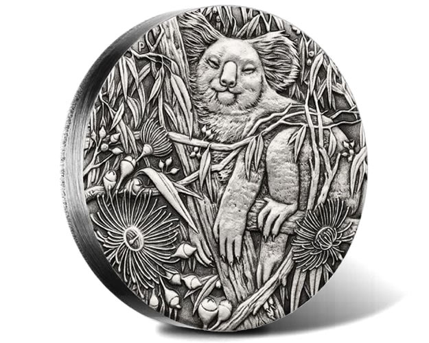 February finds new collector products from the Perth Mint of Australia that include antiqued coins with a central compass and a koala design in high relief.