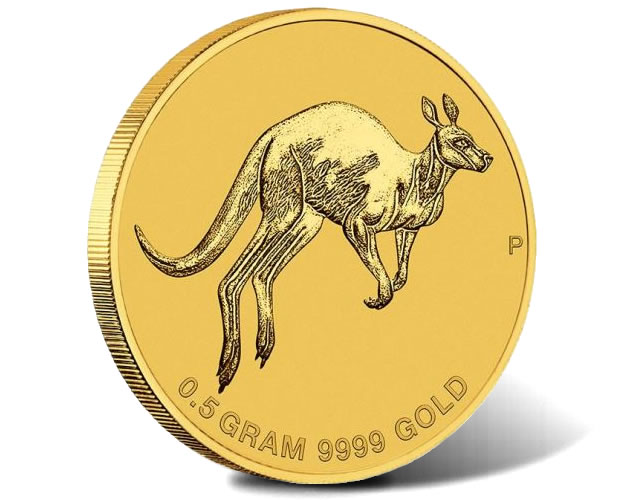 Annually popular with collectors, the latest Mini Roo 0.5g Gold Coin depicts a single kangaroo as it bounds across the outback plain. Typically described as "button-sized," the Mini Roo coin has a maximum diameter of 11.60 mm with a maximum thickness of 0.70mm.