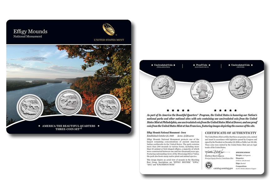 Last week, the United States Mint introduced a set of quarters commemorating Effigy Mounds National Monument in Iowa and this year’s proof American Gold Eagles.