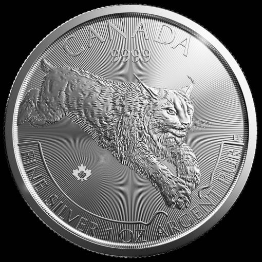 The 2017 $5 Canadian Lynx Silver Coin is in an ounce of 99.99% pure silver. Designed by Emily Damstra, the wild cat appears leaping toward its prey and against a background of precise radial lines. Inscriptions include CANADA, 9999, FINE SILVER, 1 OZ, ARGENT PUR and ED for the artist’s initials.