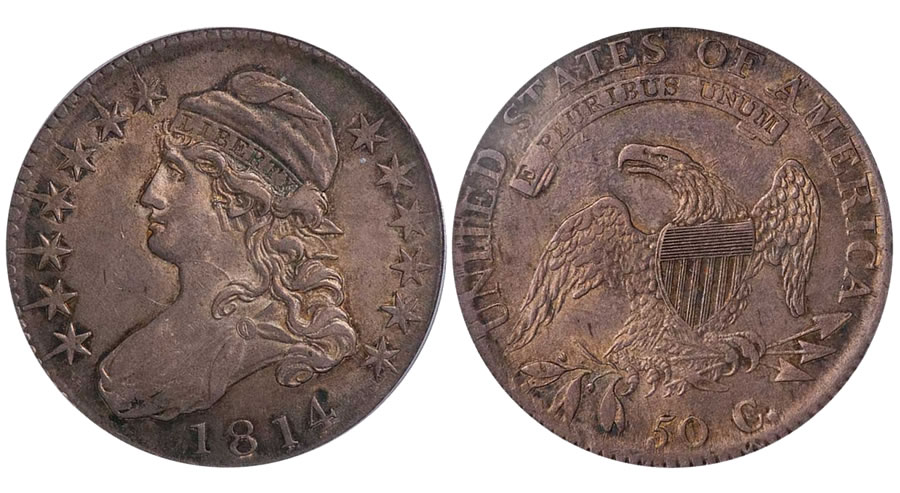 - Lot 82 — 50C 1814 PCGS AU55 CAC. Realized $6,325 on a $4,000 estimate