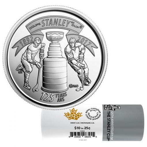 The Royal Canadian Mint is now selling specially wrapped rolls and 10-coin packs of a new 25-cent circulation coin that celebrates the 125 Anniversary of the Stanley Cup®. Introduced in 1892, the Cup is the championship trophy awarded annually to the National Hockey League playoff winner.
