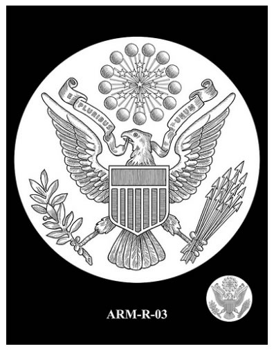 The Army medal reverse candidates and U.S. Mint descriptions of them follow.
