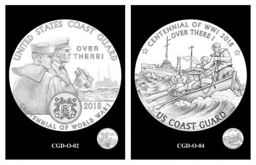 In 2018, the United States Mint will release World War I silver medals in conjunction with silver dollars commemorating the centennial of America’s involvement in the war. The medals will celebrate the five branches of the U.S. Armed Forces. One of them will honor the U.S. Coast Guard.