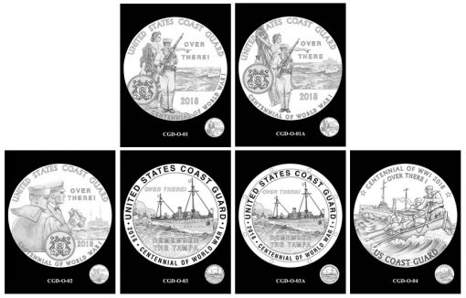 Artists for the U.S. Mint created over 60 design candidates for the five 2018 World War I Armed Forces Silver Medals. The four other medals will honor the Army (see Army medal designs), Navy (see Navy medal designs), Air Service (see Air Service medal designs) and Marines (see Marines medal designs).