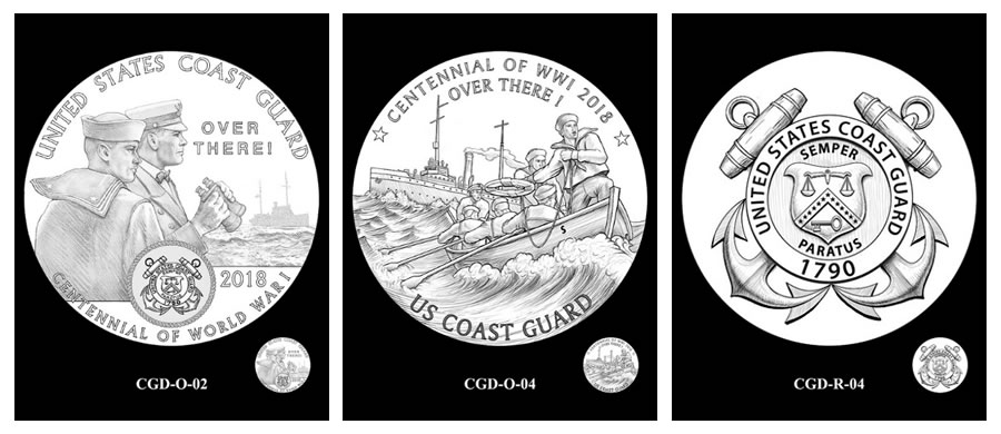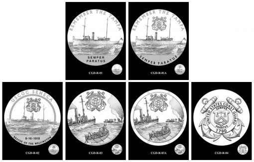 The Coast Guard medal reverse candidates and U.S. Mint descriptions of them follow.