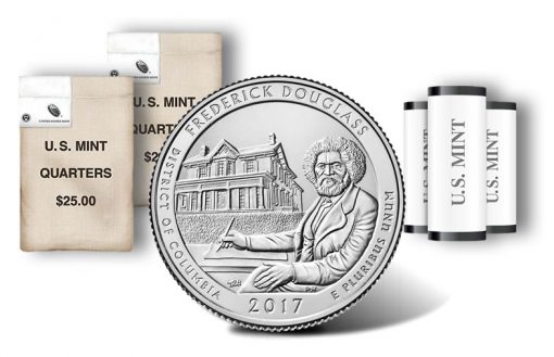 The Frederick Douglass quarter launched today, April 3, 2017, and is available in 40-coin rolls and 100-coin bags. Buyers have the option of quarters produced at the U.S. Mint’s facilities in Philadelphia, Denver and San Francisco.
