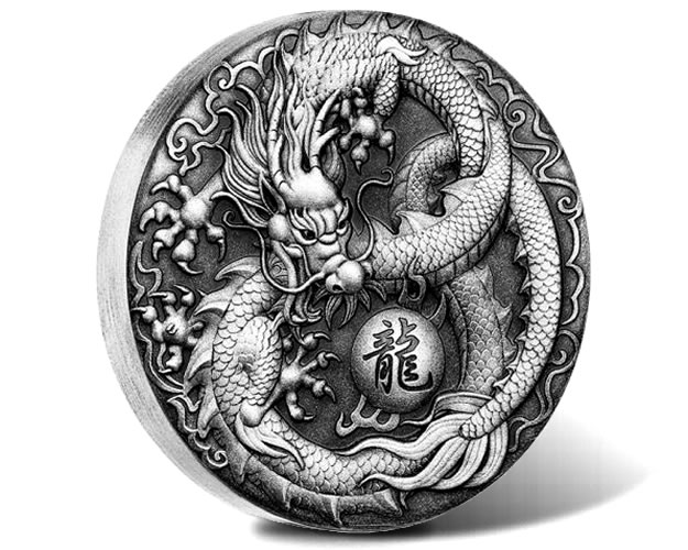 The Perth Mint has seen strong demand for its series of 2oz silver antiqued coins and the newest release will continue that trend. Featured on the $2 coin is a mythical dragon chasing a flaming pearl inscribed with the Chinese character for ‘dragon’.