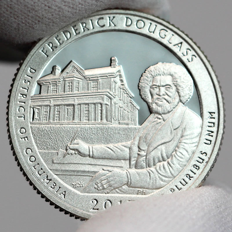 Limited to 25,000 pieces, the large quarter-dollar features a design honoring the Frederick Douglass National Historic Site in the District of Columbia (www.nps.gov/frdo/). The park was established in 1962 to preserve the home and legacy of Douglass, an abolitionist, orator, civil rights advocate, author, and statesman.