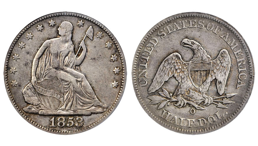 Lot 2099 showcases the finest 1853-O No Arrows Liberty Seated half dollar, a truly legendary rarity in U.S. numismatics, of which just four are known. The specimen carries an impressive provenance that can be traced back to circa 1881, that includes custodianship in the Garrett Collection, the Queller Family Collection, and the Byers Collection.