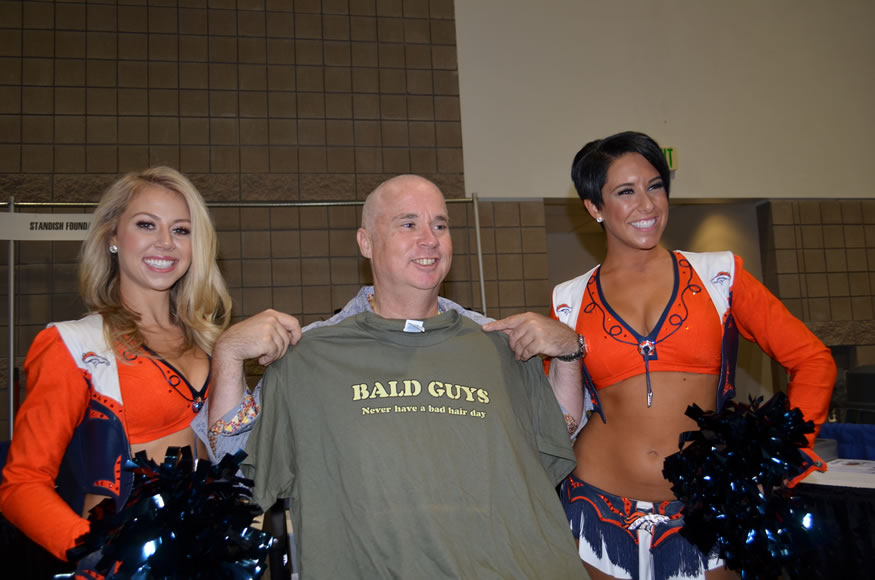 Broncos cheerleaders Brielle and Krista led cheers, signed autographs and posed for photos during the "Shave Miles" event.