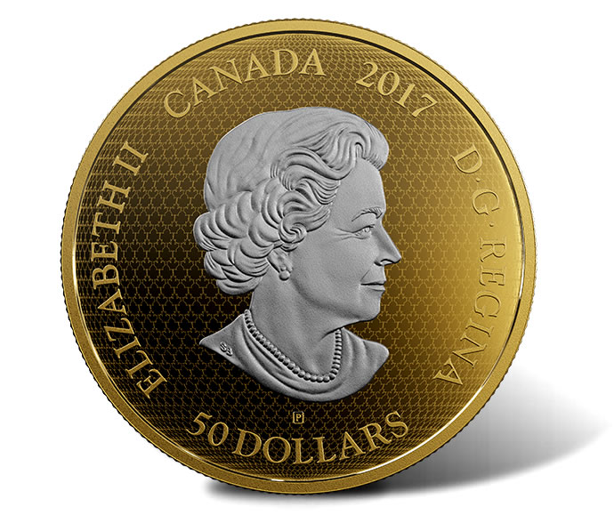 The likeness is surrounded by inscriptions of ELIZABETH II, CANADA, 2017, D G REGINA, and 50 DOLLARS.