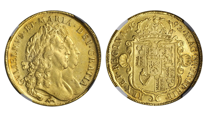 Great Britain rounded out Session A with a few standout pieces. Lot 20434, a Heavy Noble of Henry IV realized $18,800. Back to back 5 Guineas of James II and William & Mary (lots 20452 and 20453) realized $36,425 and $42,300 respectively.