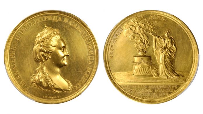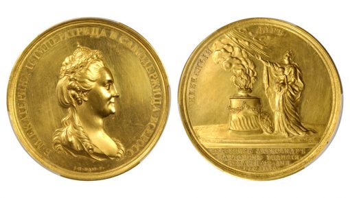 This piece was followed closely by an impressive Gold Coronation Medal of Paul I (lot 21410) that sold for $35,250.