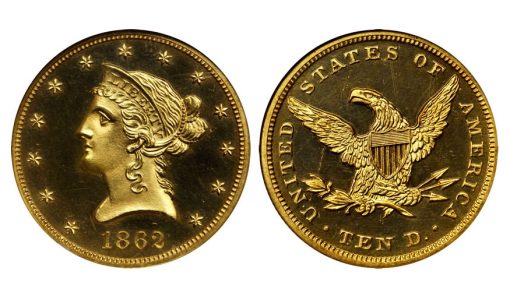 Gold coinage continued this momentum as the Proof-64 Cameo (NGC) 1862 Liberty eagle in lot 2202 earned $94,000 and the MS-65 (PCGS) 1908-S double eagle in lot 2231 brought $64,625.