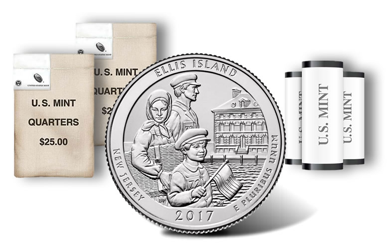 Ellis Island is the latest national site honored in the United States Mint series of America the Beautiful Quarters®. Coins emblematic of the island in New Jersey launched today, Aug. 28, 2017, and are available in rolls and bags.