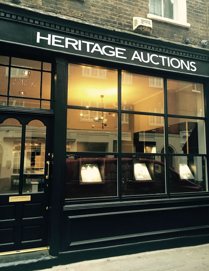 The Heritage Auctions’ London saleroom and offices are regularly open to the public from 11 a.m. to 6:30 p.m., Monday through Friday. The phone number is +44 (0)207 493 0498 and the email address is UK@HA.com.