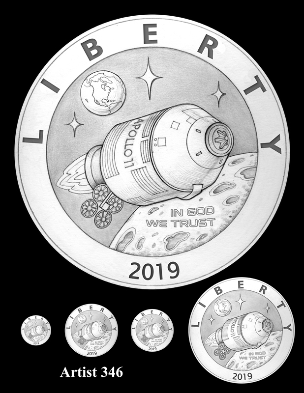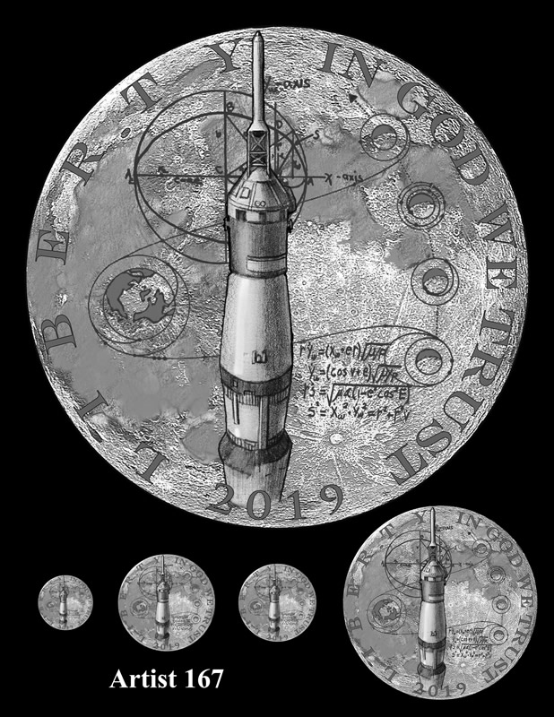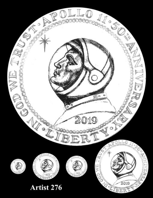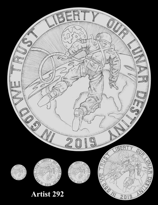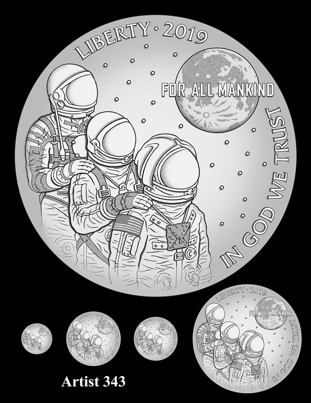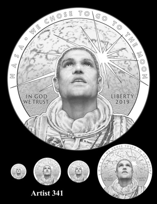 Candidates for the reverse design were unveiled earlier this year, with each a representation of the iconic 1969 "Buzz Aldrin on the Moon" photograph that shows just the visor and part of the helmet.