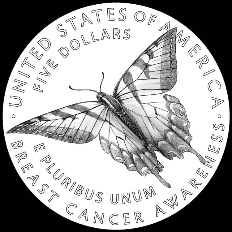 Reverses depict a Tiger Swallowtail butterfly in flight, a symbol of hope. U.S. Mint Sculptor-Engraver Renata Gordon sculpted the design.