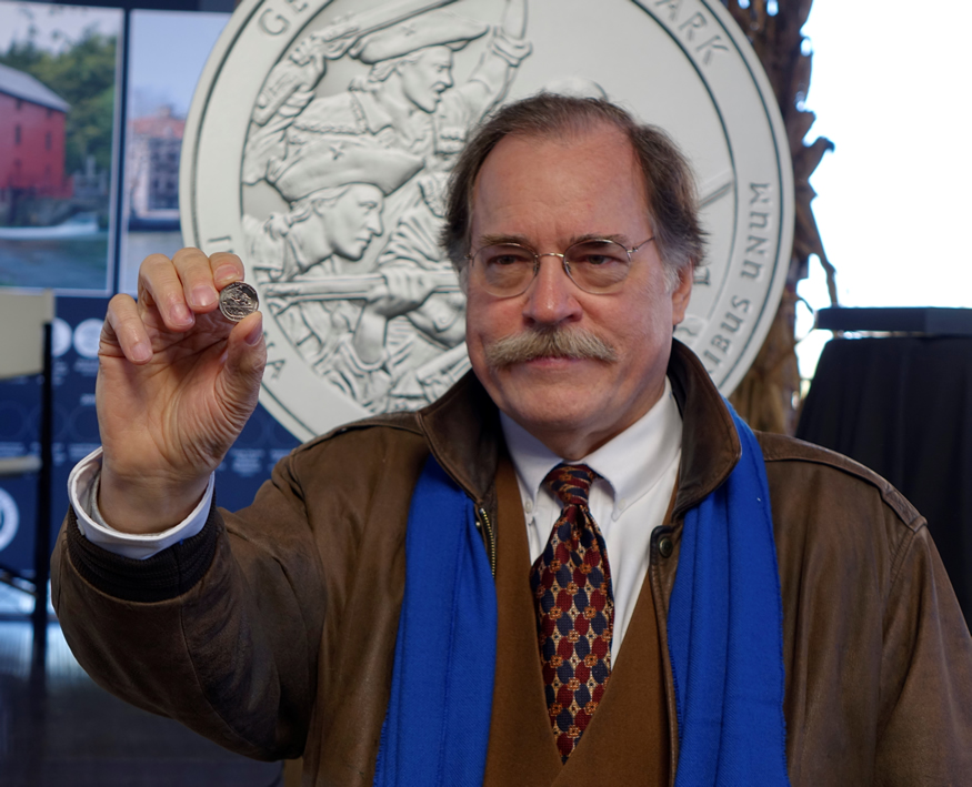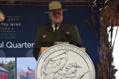 Joe Herron, Chief of Interpretation for George Rogers Clark National Historical Park participates in the ceremonial launch. U.S. Mint photo by Sharon McPike.