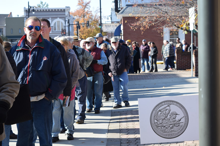An eager public lines up to exchange cash for new George Rogers Clark quarters. U.S. Mint photo by Jill Westeyn.