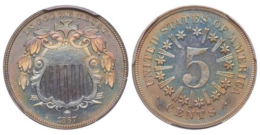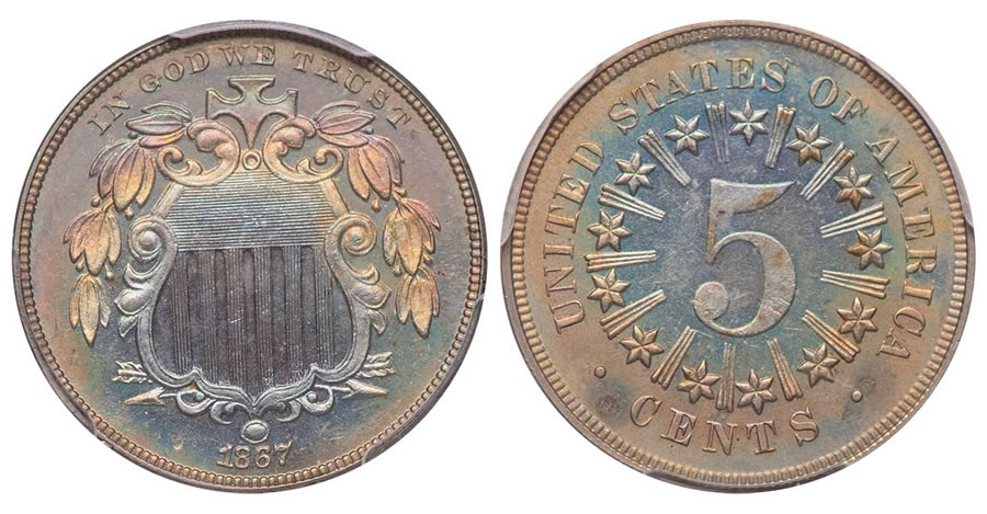 - Lot 61 5C 1867 Rays. PCGS PR64+ CAC From the York Collection