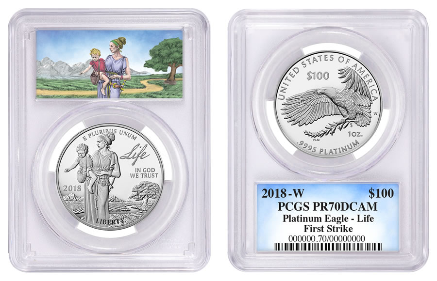 This year’s edition commemorates "Life." It will be followed in years 2019 and 2020 with designs celebrating "Liberty" and Americans’ pursuit of "Happiness." PCGS has created a special label for each coin. (See designs for the three coins.)