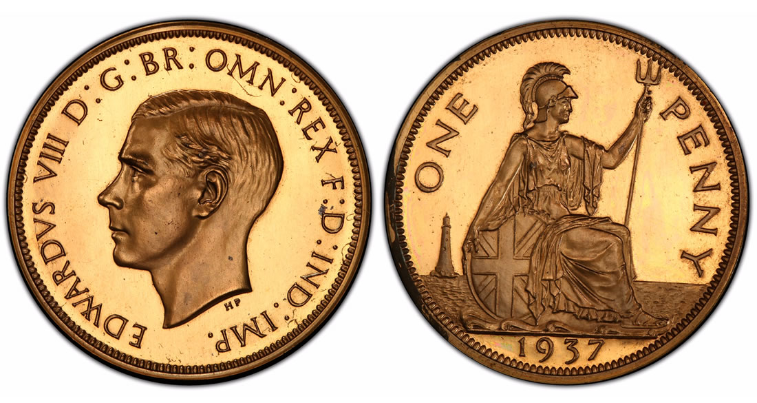 One focus of the Tyrant Collection is the proof coinage of the Royal Mint. Many individual, early proofs and patterns in gold and silver will be included in the display, but a special portion of the exhibit will showcase complete sets. Most sets have long since been broken up, so this exhibit at the February 2018 Long Beach Expo is an unusual opportunity to view the sets as they were originally presented.