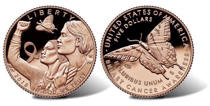 First-day sales of the six different 2018 Breast Cancer Awareness Commemorative Coins combined to 37,778, according to United States Mint spokesman Michael White.