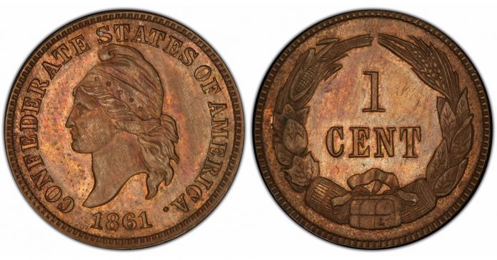 The ANA Museum Showcase display also will include one of the finest known of the 16 original CSA 1861 cents struck under mysterious circumstances in Philadelphia, and insured now for $250,000.