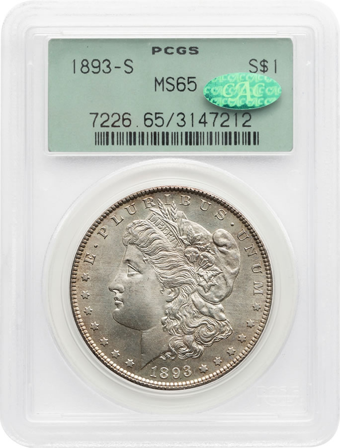 The "King of Morgan Dollars," an 1893-S graded PCGS MS65, also sold for $735,000 and also against a pre-auction estimate of $300,000 to $500,000.