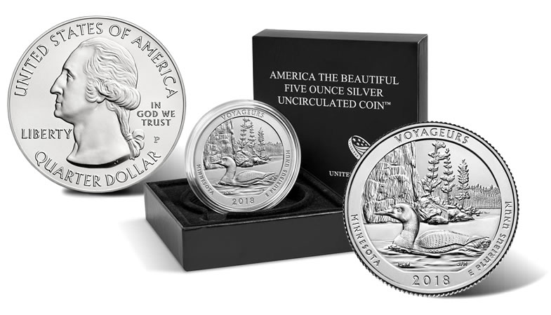 Large 3-inch, 5-ounce .999 fine silver coins honoring Voyageurs National Park of Minnesota will go on sale today, June 14. The United States Mint will release the collectible at noon ET for $154.95.