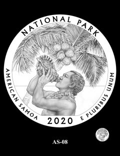 AS-08 portrays a man blowing into a conch shell, which is a ritual often used to signify important cultural and religious ceremonies. Since it is also used to communicate across the waters, a coin with this design can be seen as a global invitation to visit the National Park of American Samoa.