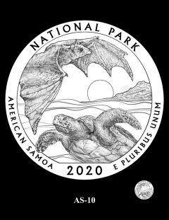 AS-10 features both the Samoan Fruit Bat and the Green Sea Turtle with the island of Samoa in the background. Both creatures are native to the island and are significant mythological symbols of the ancient Samoan culture.