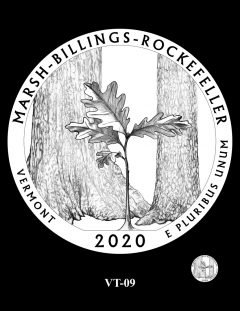 VT-09 feature a young oak seedling next to a maple and a Norway spruce. The seedlings are a part of the environment that ensures the continuing health of the forest, representing 150 years of environmental conservation and land stewardship throughout the park.