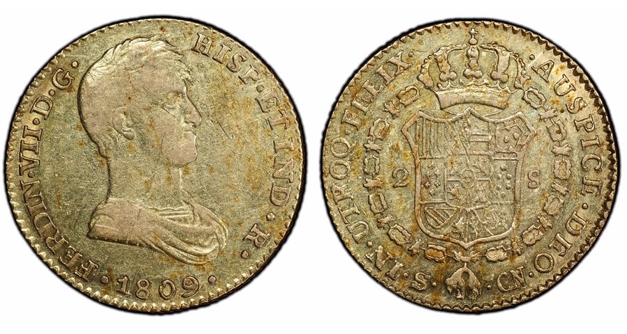 Also now certified are Costa Rica 1855 JB 1/2 Escudo, PCGS MS63; France 1854-A Napoleon III 5 Francs, PCGS MS61 and France 1855-A Napoleon III 20 Francs, PCGS MS61; Mexico 1852-Go 8 Escudos, PCGS MS61; Netherlands 1840 (u) King Willem I 10 Gulden, PCGS MS63+; and Spain King Ferdinand VII 1809-S Draped Bust 2 Escudos, PCGS AU50, the oldest-dated gold piece recovered from the famous ship.