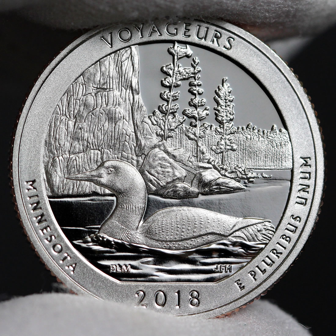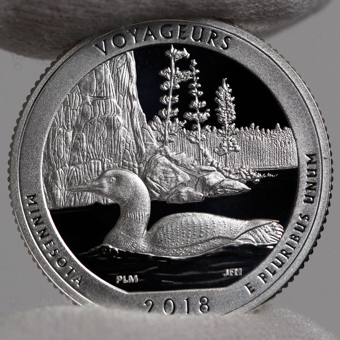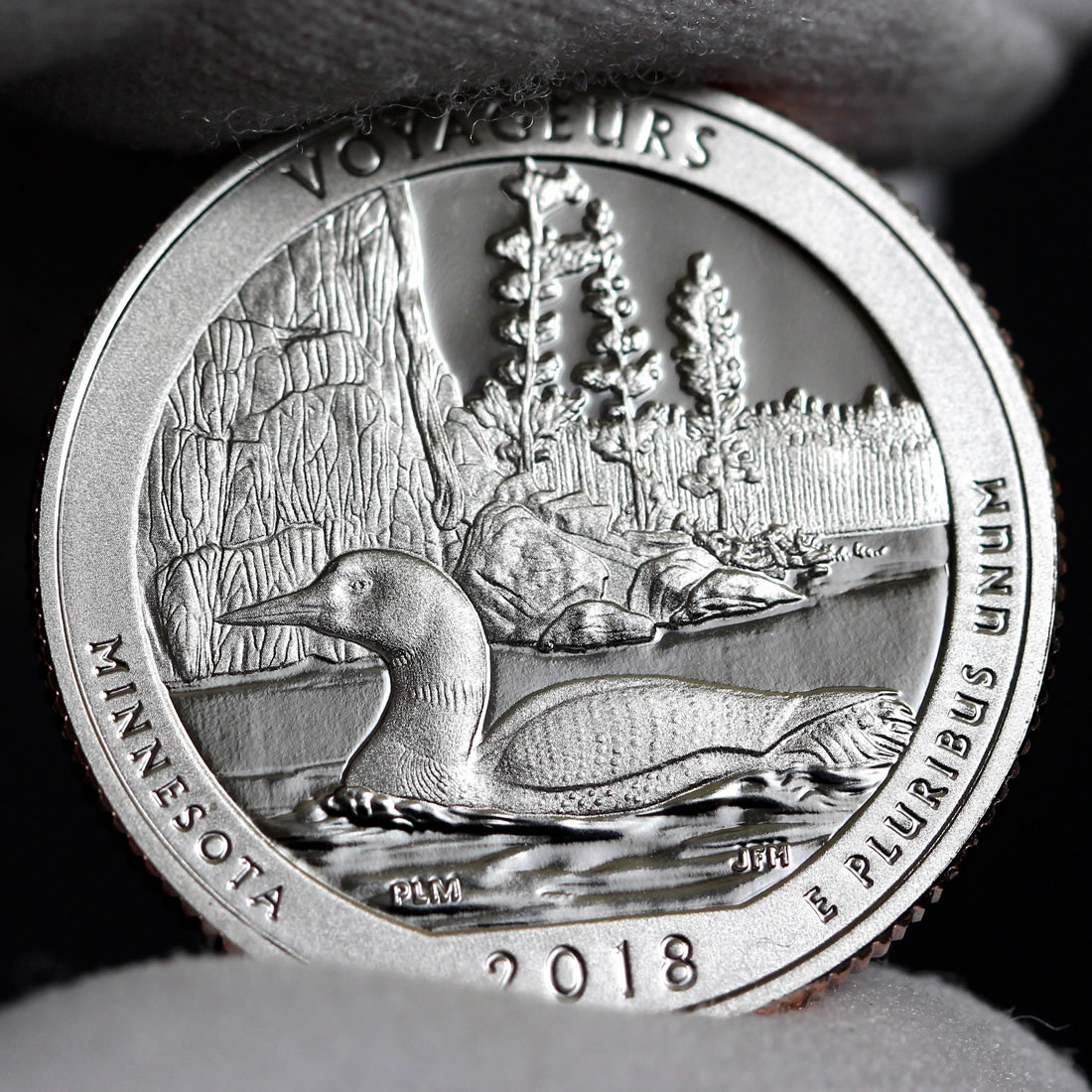 This article presents photos of Minnesota’s Voyageurs National Park quarter, the third of this year’s five coins from the United States Mint’s program of America the Beautiful Quarters®.