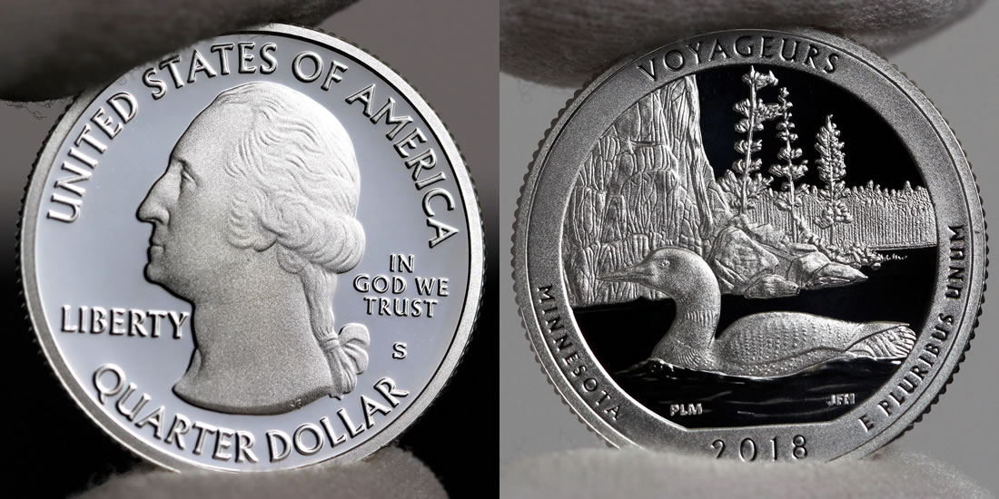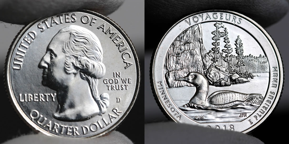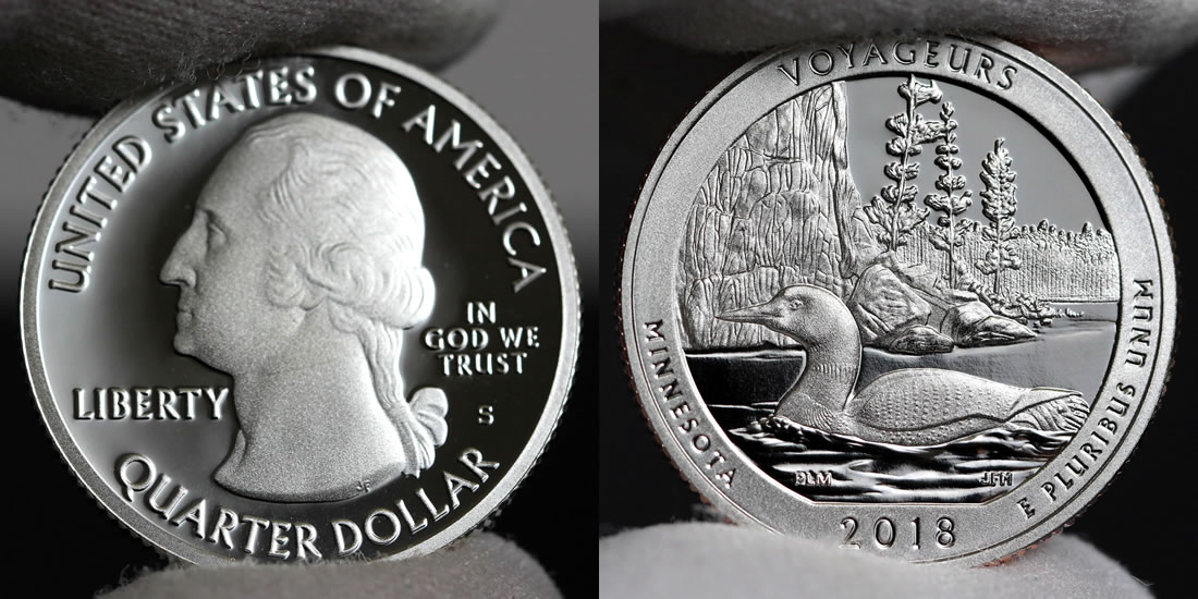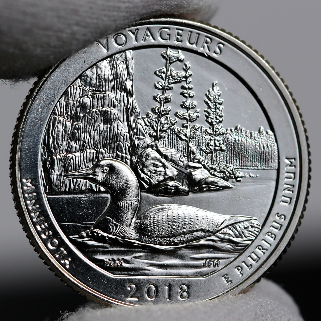 This article presents photos of Minnesota’s Voyageurs National Park quarter, the third of this year’s five coins from the United States Mint’s program of America the Beautiful Quarters®.