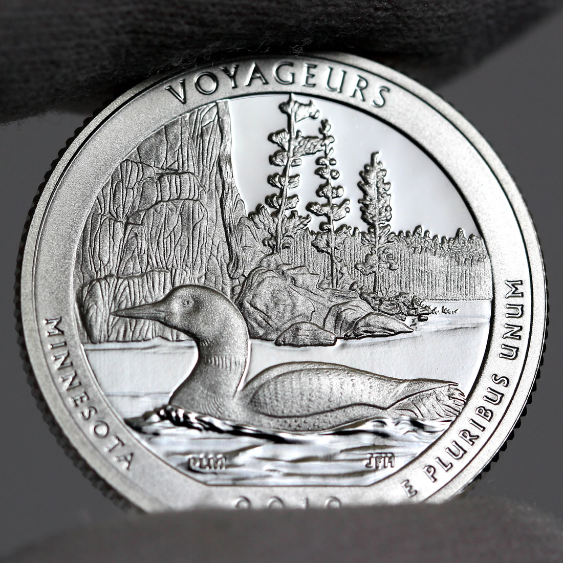 Several events supported the release of the quarter depicting Voyageurs National Park, the distinctive area in northern Minnesota that includes forests, lakes, islands, and miles of undeveloped shoreline. Geographically, the park is located on the Canadian Shield with its ancient rocks forming the core of the North American Continent.