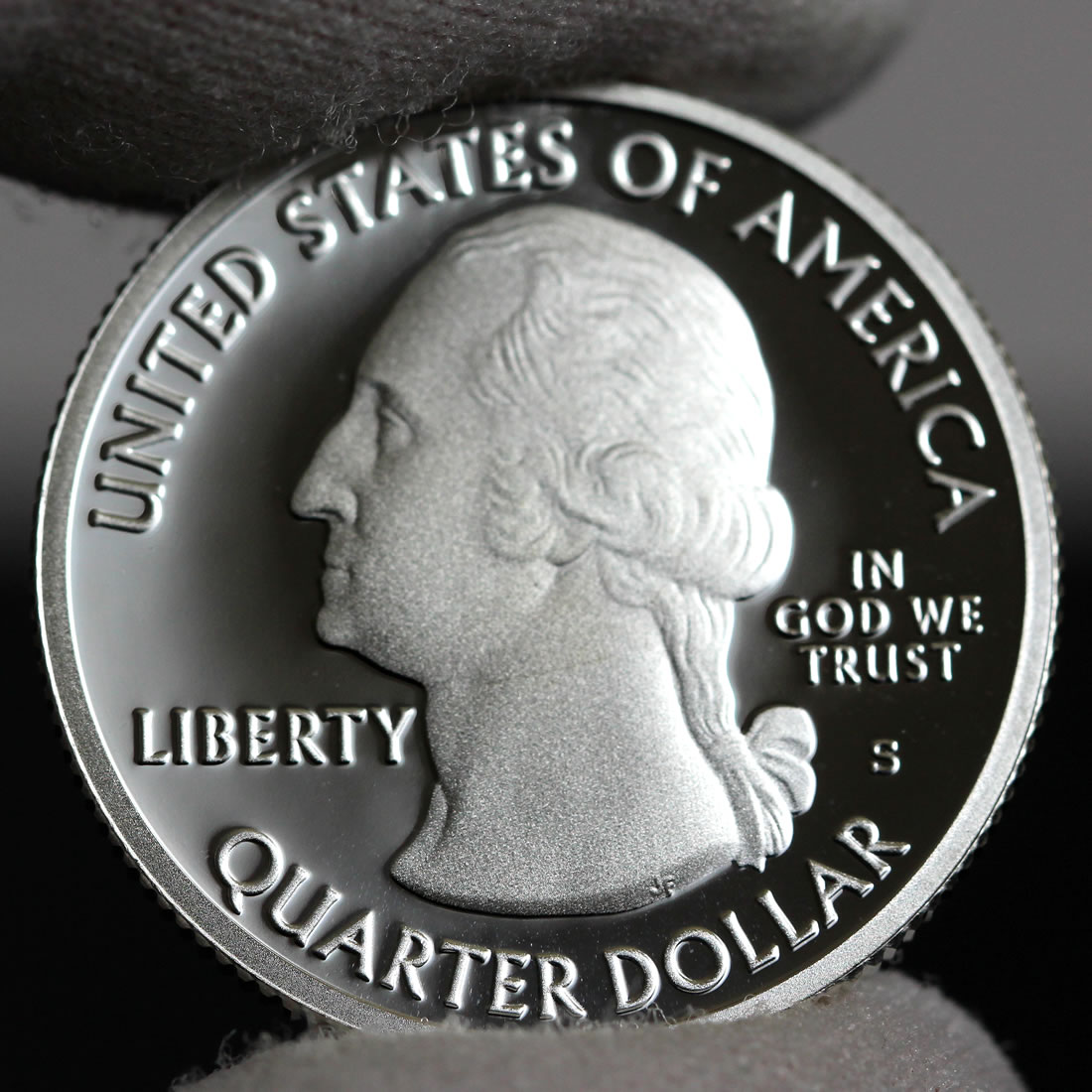 These next four photos show some silver proof quarters, which are also made at the San Francisco Mint and bear an ‘S’ mintmark. The U.S. Mint’s silver coins are struck for numismatic proof sets and are composed of 90% silver and 10% copper.