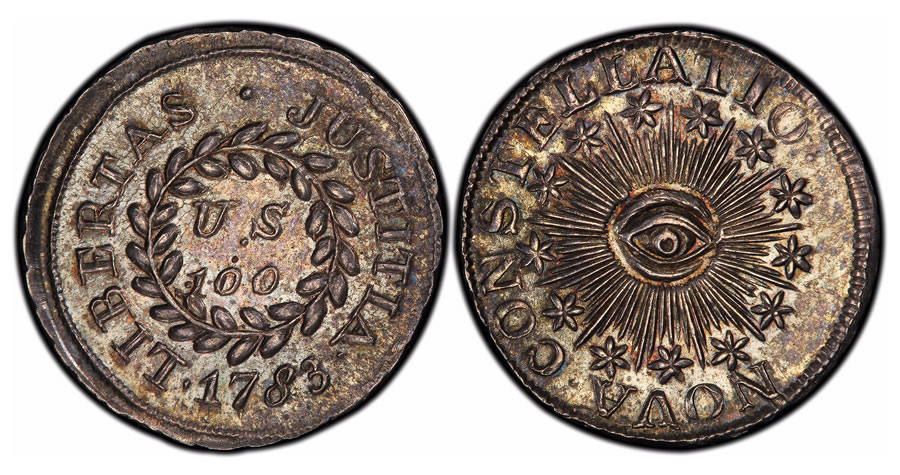 Nova Constellatio is Latin for "new constellation," and the pattern coins were created at the urging of U.S. Superintendent of Finance and Declaration of Independence signer, Robert Morris, as proposed units of currency for the young United States. The coins were struck in Philadelphia in 1783 under authority of the U.S. Treasury Department.